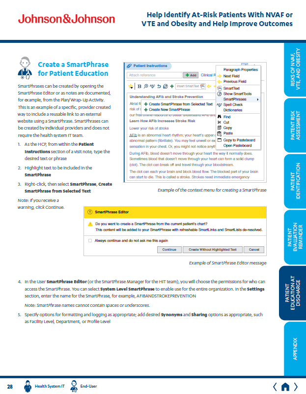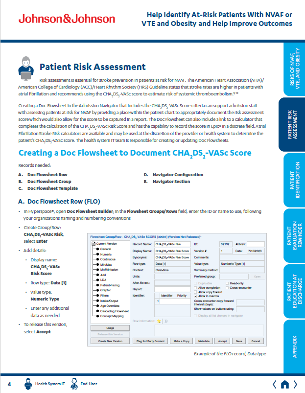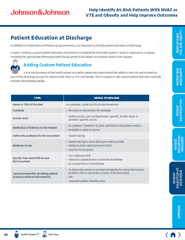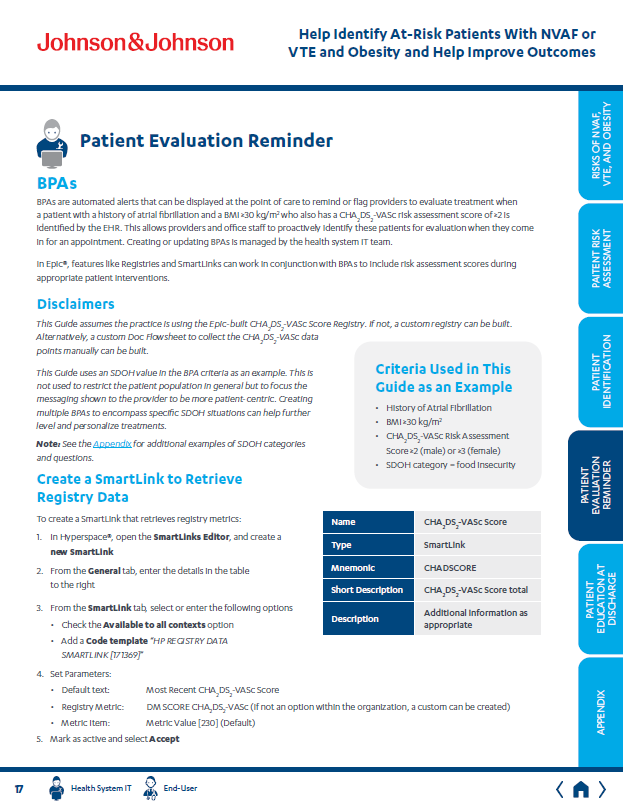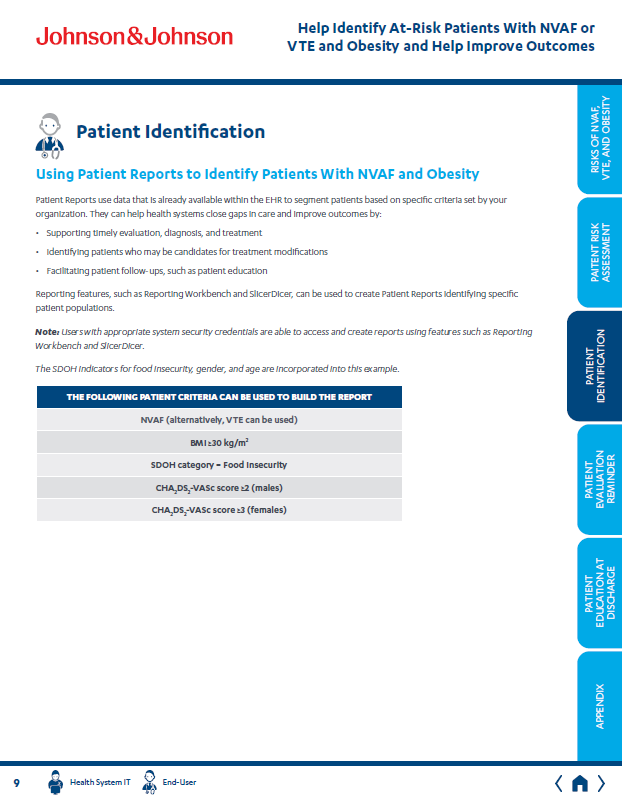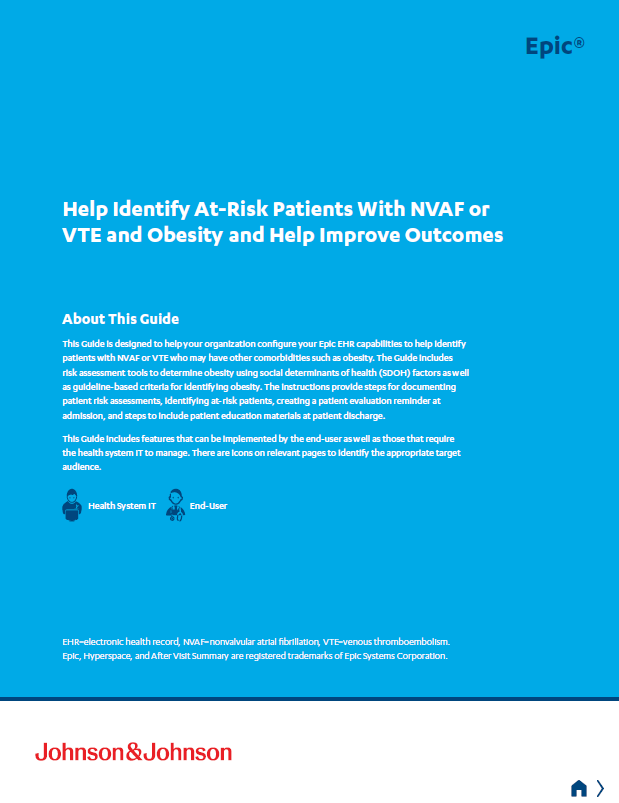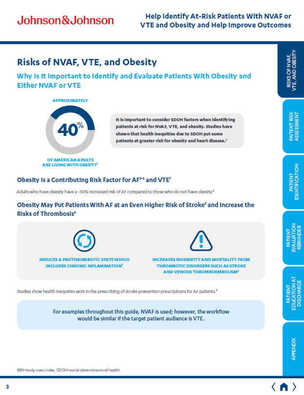Key pages from an unbranded brochure created to help the J&J Xarelto field sales team initiate discussions with providers regarding patients NVAF and/or VTE who may benefit from treatment evaluation.